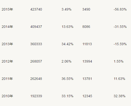 三全雖然每年保持了收入增長,但歸屬于母公司所有者的凈利潤(以下簡稱“歸母凈利潤”)卻自2013年以來出現下滑,而且持續三年之久,2015年歸母凈利潤下滑幅度高達 56.83%。