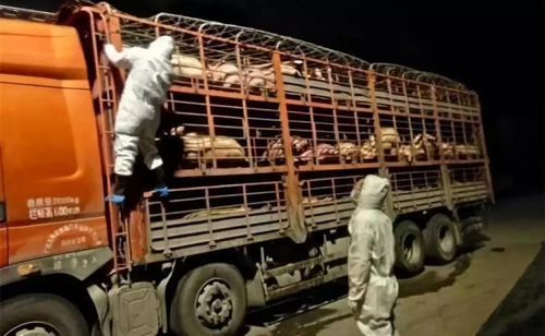 11、四川鄰水?dāng)r獲,載有非洲豬瘟疫病生豬車輛