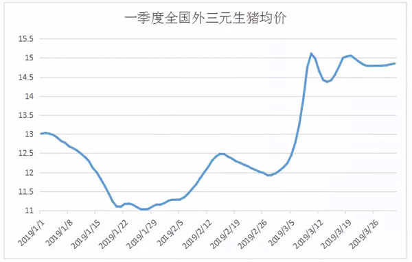 一季度豬價整體下行,主要是臨近春節養殖戶積極出欄,市場豬源增多,屠宰企業收豬無壓力,多進行壓價操作,1月末下跌至11元/公斤左右。但是隨著消費的提升,春節期間豬價上漲至12.5元/公斤,節后豬肉消費下滑,豬價又跌至12元/公斤。受非洲豬瘟影響,生豬及能繁母豬存欄下降明顯,3月份市場豬源存在缺口,豬價在15元/公斤震蕩調整。