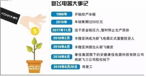 2017年11月,新飛公司宣布破產(chǎn)重整;2018年4月13日,豐隆亞洲決定撤出新飛。