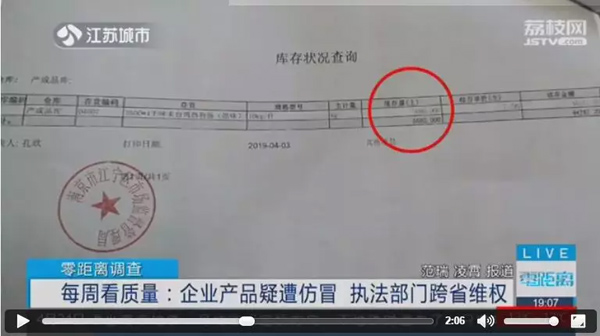 4月24日,江蘇城市頻道當天的《每周看質(zhì)量》欄目詳細報道了這一事件。視頻顯示,因涉嫌仿造的千味來食品生產(chǎn)地在濰坊,市場監(jiān)管局先到山東,借助山東省濰坊市市場監(jiān)管局執(zhí)法人員對近似商品進行調(diào)查,4月中旬,兩地執(zhí)法人員在濰坊鑫順康食品有限公司發(fā)現(xiàn)大量涉嫌仿冒的商品。