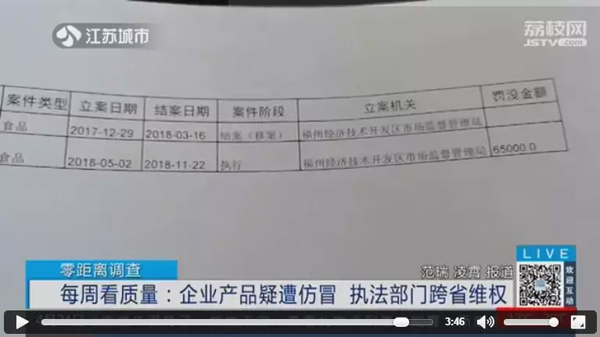 福州市市場監(jiān)管局檔案材料顯示,2017和2018年兩次被檢測有質(zhì)量問題,產(chǎn)品質(zhì)量不合格,一起案件被罰款6.5萬元,另一起因案情重大,被移交公安機關(guān)處理。