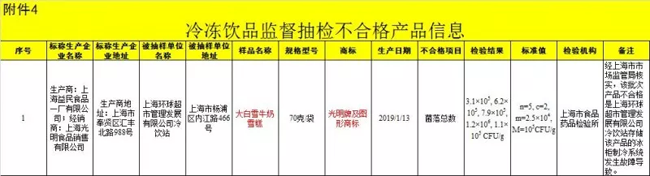 光明一批次大白雪牛奶雪糕不合格,