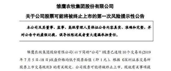 把豬餓死的養豬第一股 *ST雛鷹可能退市