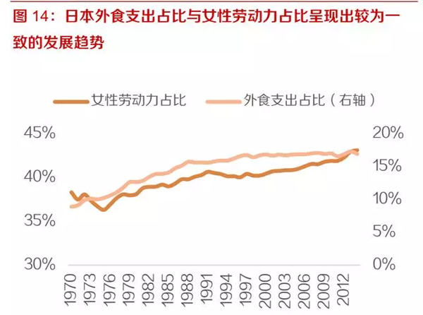隨著生活節(jié)奏的加快,家務(wù)勞動(dòng)社會(huì)化趨勢(shì)更加明顯。對(duì)比日本,可以發(fā)現(xiàn)家務(wù)勞動(dòng)的社會(huì)化進(jìn)程中,外食和速凍食品的消化量也在逐年提高。因此可以看出家務(wù)勞動(dòng)的社會(huì)化進(jìn)程,是外食和速凍食品等便捷式餐飲形式發(fā)展的主要?jiǎng)恿Α?/span>