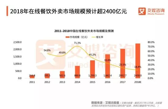 2018年在線餐飲外賣市場規模預計超2400億元