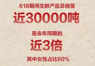 來源: 冷凍食品網 發布者:編輯今年618期間(6月1日0:00-6月18日24:00),京東生鮮共銷售生鮮產品約30000噸,是去年同期的近3倍,其中女性占比60%。