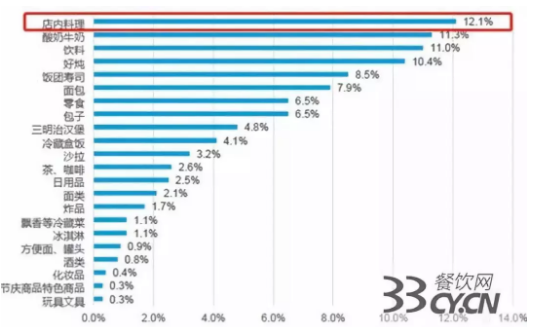 據阿里研究院發布的數據顯示,12.1%的消費者進便利店會購買店內料理,購買關東煮的消費者占比10.4%,而購買包子、盒飯等主食的的消費者占比分別為6.5%、4.1%。總體數據側面反應了中國消費者對鮮食相對信任的態度。