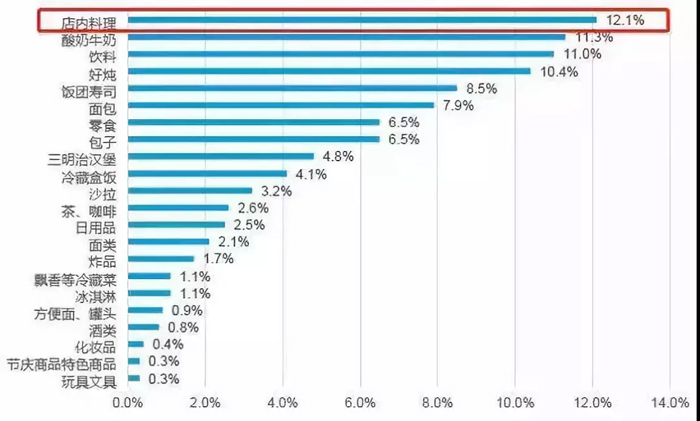 相比較而言,國內(nèi)消費(fèi)者對(duì)于鮮食有著更寬容的心態(tài)。據(jù)調(diào)查,12.1%的消費(fèi)者進(jìn)便利店會(huì)購買店內(nèi)料理,再算上關(guān)東煮10.4%,飯團(tuán)壽司8.5%、包子、三明治等鮮食的購買比例,總體數(shù)據(jù)側(cè)面反映了中國消費(fèi)者對(duì)鮮食相對(duì)信任的態(tài)度。