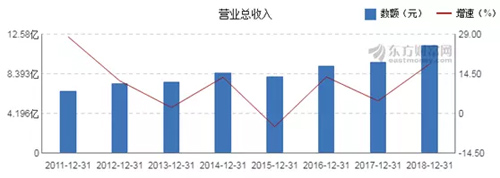 近8年來(lái),該公司同期營(yíng)業(yè)收入及增速情況如下圖: