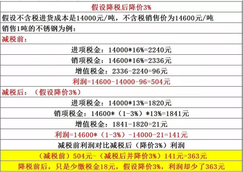 今年制造業(yè)增值稅由16%的稅率降至13%,客戶再次借機(jī)降價3%,下面讓我們來好好算算: