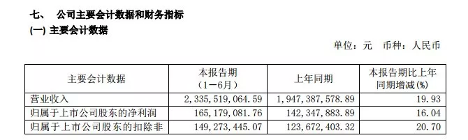 昨天,安井食品發布2019年中報,稱報告期內公司實現營業收入23.36億元,同比增長19.93%;凈利潤為1.65億元,同比增長16.04%。