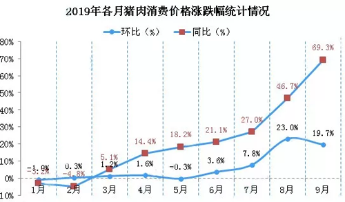 根據國家統計局10月15日發布的2019年9月份全國CPI(居民消費價格指數),9月CPI環比上漲0.9%,同比上漲3.0%。專家指出,9月CPI漲幅略超預期,豬肉價格推升的食品價格上漲是主要因素。具體而言,豬肉價格上漲69.3%,影響CPI上漲約1.65個百分點。