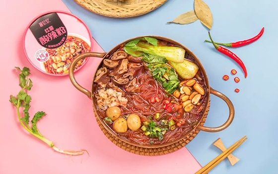 最近,他們還在研究酸辣粉。不同于現(xiàn)在市場上的常規(guī)產(chǎn)品,紅薯軟軟的酸辣粉選用洛陽市洛寧縣河底鎮(zhèn)的優(yōu)質(zhì)紅薯粉,輔料、底料從幾十家供應(yīng)商中擇優(yōu)使用,做可以喝湯的酸辣粉,多次免費送樣品鑒、反饋、改進(jìn)后才初步定型。整體包裝依然延續(xù)粉紅色,還加入了情緒宣傳語,提升品牌附加值。