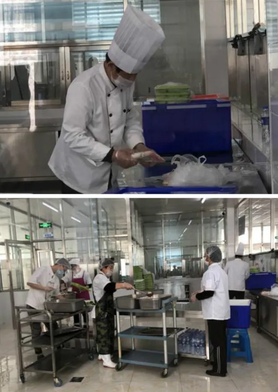 午餐時間,延吉市職高食堂工作人員“全副武裝”準備午餐盒飯↓↓↓
