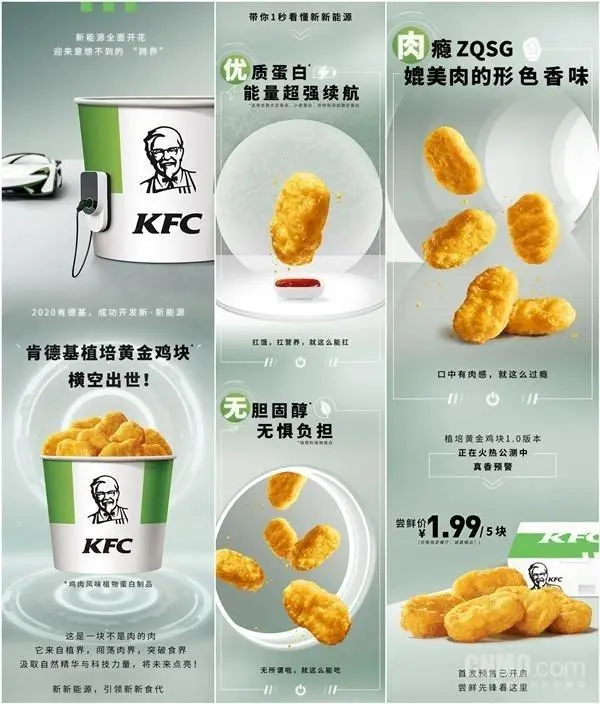 4月20日,肯德基在其微信上官宣,他們將正式推出新品“植培黃金雞塊”。這種“植培雞塊”其實是一款雞肉風味的人造肉,原料是大豆蛋白、小麥蛋白和豌豆蛋白,這也是常見的人造肉產品的蛋白來源。
