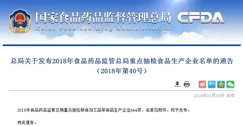 2018年食品藥品監(jiān)管總局重點(diǎn)抽檢